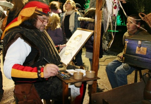 Sur la thématique de NOEL, peintre impressionniste 1900 venu tout droit de Montmartre s’intéresser aux lumières, sapins et habitants du lieu, le MARCHAND DE COULEURS conte et raconte les couleurs de NOEL à celles et ceux qui veulent bien l’entendre… Sous prétexte de ramener des images à Paris, il en profite pour croquer à L’AQUARELLE la tête de ses semblables puis leur offrir comme CADEAU DE NOEL, cette caricature avec humour… Sans oublier quelques petits tours de magie simple et spectaculaires sur le thème des couleurs et de Noël…